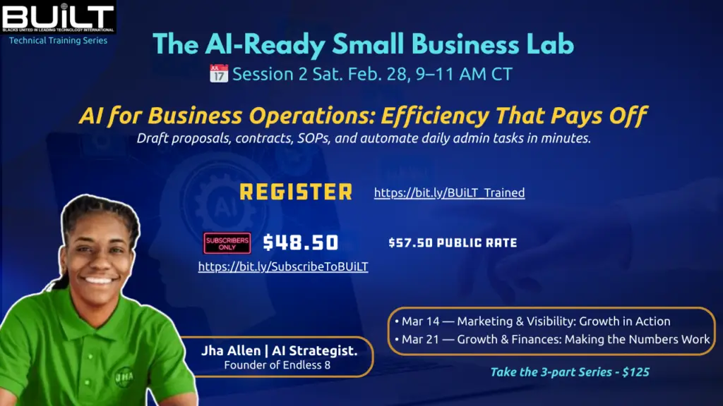 The four-session program provides entrepreneurs with a structured way to integrate AI into how they run, market, and grow their businesses. It’s not about theory or hype, it’s about showing business owners how to turn repetitive work, scattered marketing, and disconnected finances into smarter, streamlined systems that drive measurable results.
